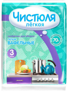 Салфетки для уборки Чистюля легкие вафельные 3 штук - Бытовая химия и косметика оптом - ТДК