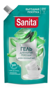 Гель для мытья посуды Sanita Алоэ и зеленый чай, 900г - Бытовая химия и косметика оптом - ТДК