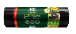 Master FRESH пакеты д/мусора суперпроч. 30л, 20 штук (ЧЕРНЫЕ) 20мкм усиленное дно - Бытовая химия и косметика оптом - ТДК